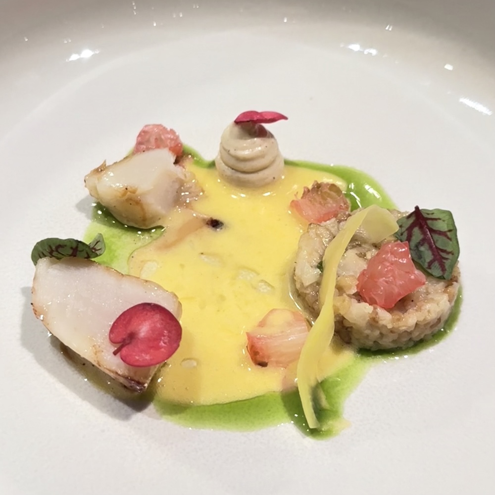 Next came the Seared Hokkaido Scallops, glazed in seaweed butter and paired with miso-truffle sauce. Exquisite as the scallops were, it was the cauliflower and pine nut hash that truly lingered—a humble component transformed into something bold enough to stand alone. Together, the dish struck a perfect balance of richness and earthiness.