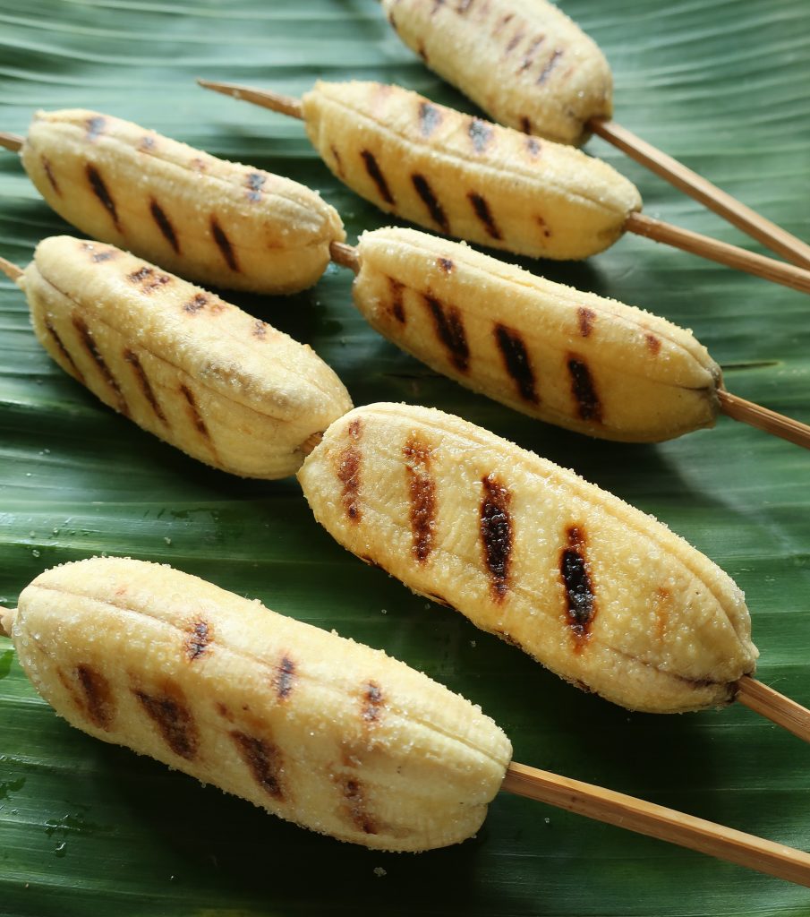 Ginanggang, which originates from and is largely enjoyed in Mindanao, is grilled saba bananas brushed with butter or margarine and sprinkled with sugar. The banana is peeled, skewered in a barbecue stick, and grilled until the surface is lightly charred. Taken off the grill, it is brushed with butter and then sprinkled or lightly rolled in white sugar. Similar to yet at the same time different from the banana cue in many ways, ginanggang is definitely a lighter snack than its more familiar “relative.”